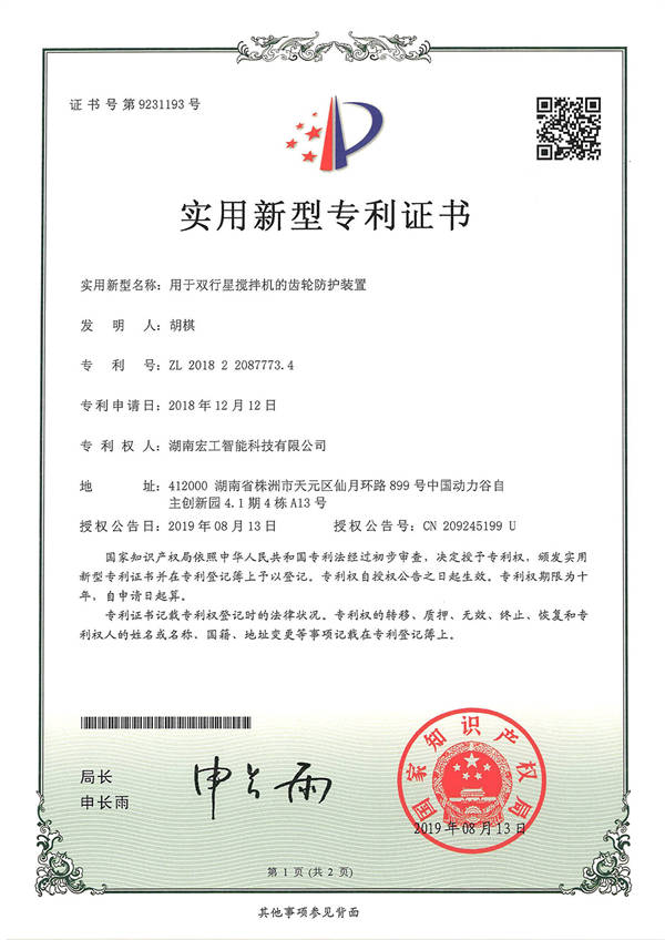 用于雙行星攪拌機(jī)的齒輪防護(hù)裝置